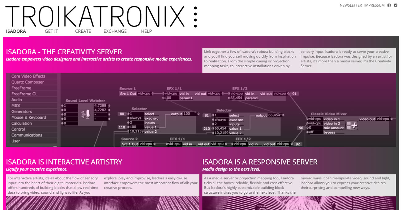 Isadora is a real-time visual programming tool for creating interactive video and media performances.